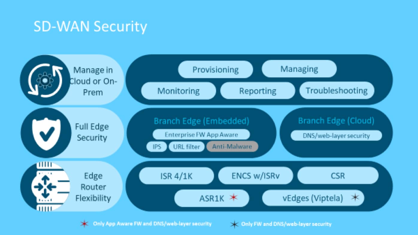 Cisco took its robust security technology on traditional IOS XE and brought it into the IOS XE SD-WAN solution.